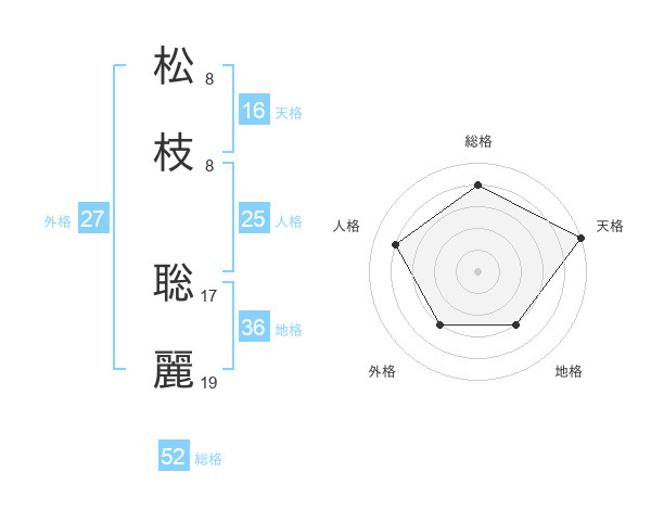 松枝 聡麗さんを姓名の画数から五運を鑑定