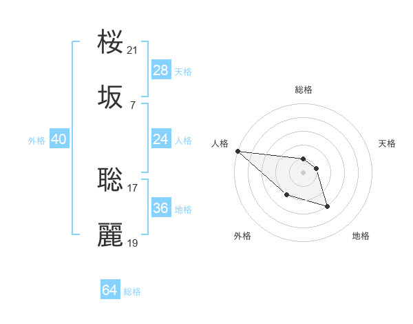 桜坂 聡麗さんの総格は64画の1点!