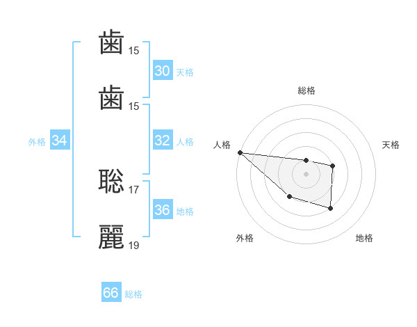 歯歯 聡麗さんの総格は66画の1点!
