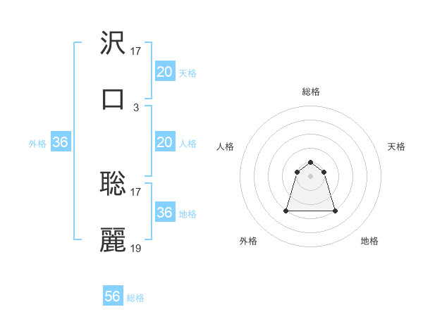 沢口 聡麗さんの天格は20画の1点!