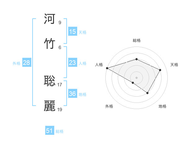 河竹 聡麗さんを姓名の画数から五運を鑑定