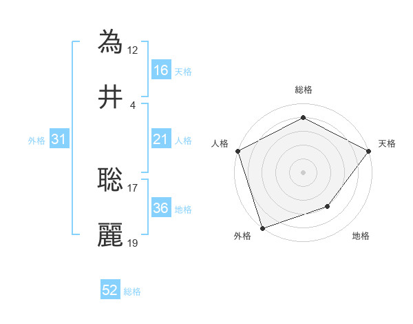 為井 聡麗さんの総格は52画の4点!