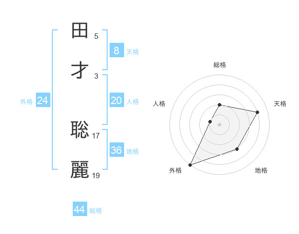 田才 聡麗さんの天格は8画の4点!