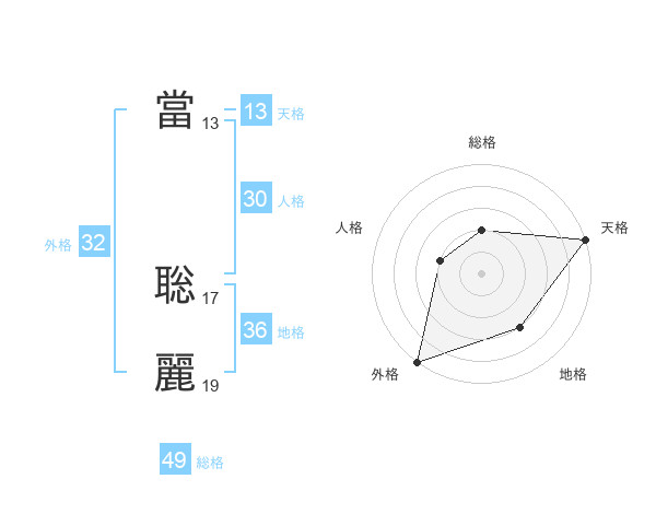 當 聡麗さんの総格は49画の2点!