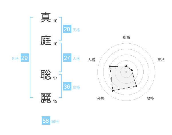 真庭 聡麗さんの天格は20画の1点!