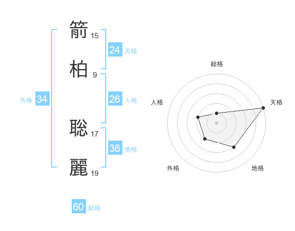 箭柏 聡麗さんの天格は24画の5点!