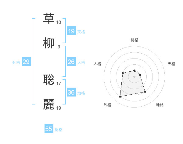 草柳 聡麗さんを姓名の画数から五運を鑑定