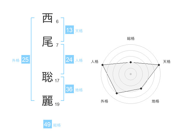 西尾 聡麗さんの総格は49画の2点!