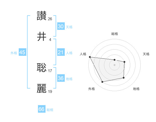 讃井 聡麗さんの総格は66画の1点!