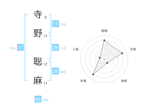 寺野 聡麻さんの天格は17画の4点!