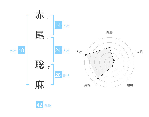 赤尾 聡麻さんを姓名の画数から五運を鑑定
