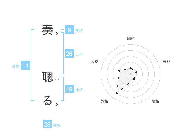 奏 聰るさんの総格は28画の1点!
