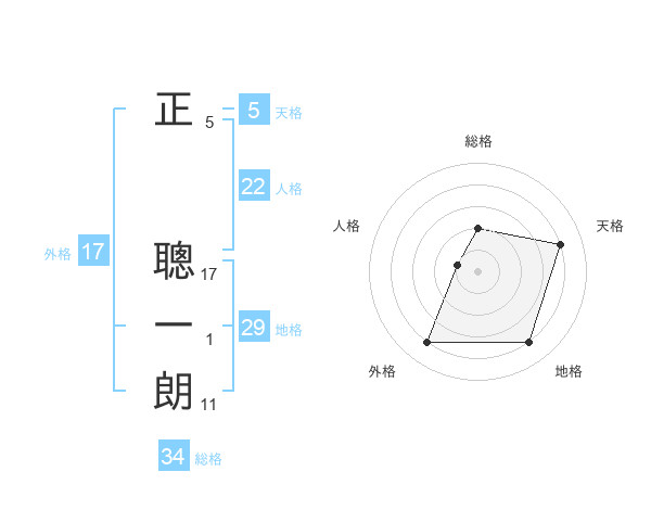 正 聰一朗さんの天格は5画の4点!