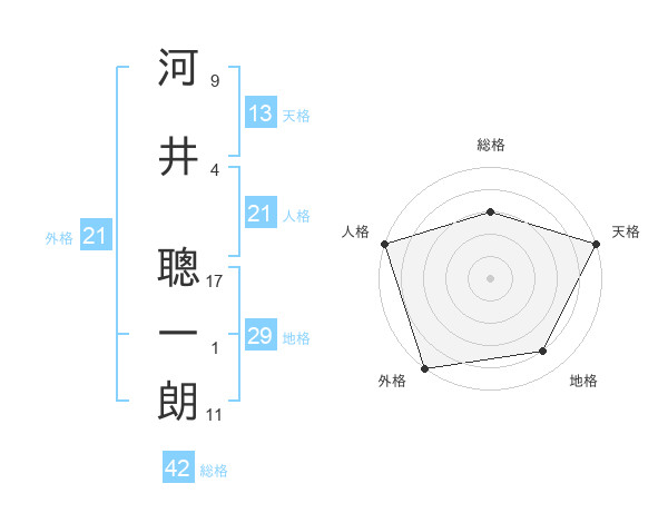 河井 聰一朗さんを姓名の画数から五運を鑑定