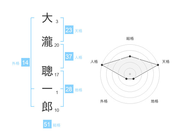 大瀧 聰一郎さんを姓名の画数から五運を鑑定