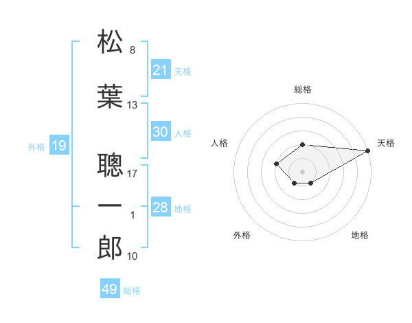 松葉 聰一郎さんの天格は21画の5点!