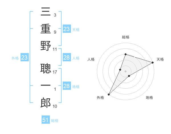 三重野 聰一郎さんを姓名の画数から五運を鑑定