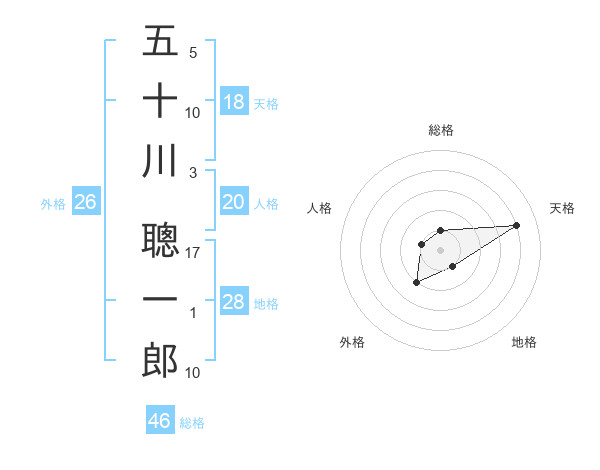 五十川 聰一郎さんを姓名の画数から五運を鑑定