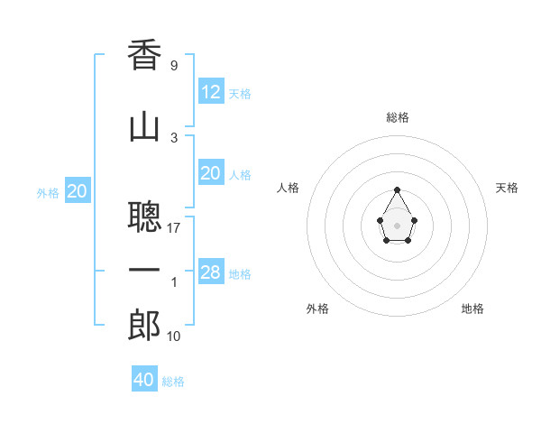 香山 聰一郎さんの総格は40画の2点!