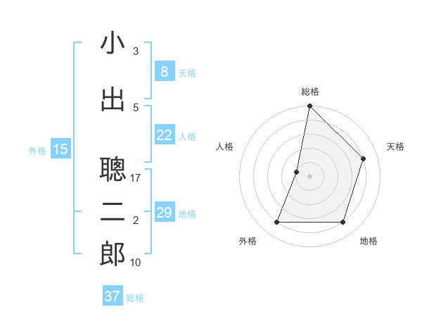 小出 聰二郎さんの総格は37画の5点!
