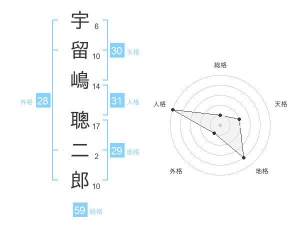 宇留嶋 聰二郎さんの総格は59画の1点!