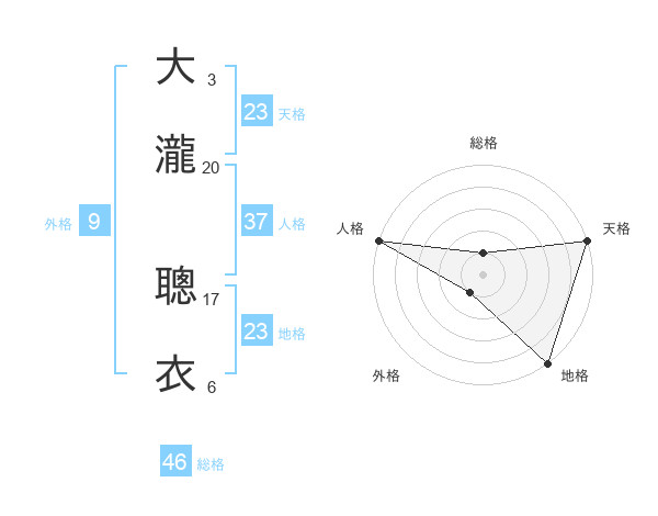 大瀧 聰衣さんの天格は23画の5点!