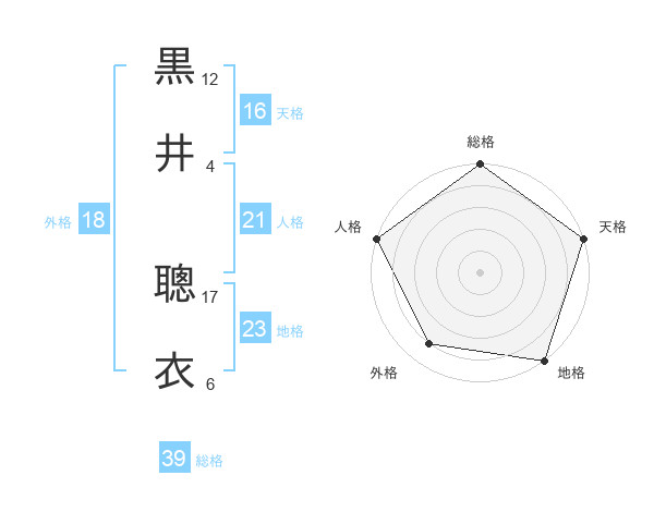 黒井 聰衣さんの天格は16画の5点!