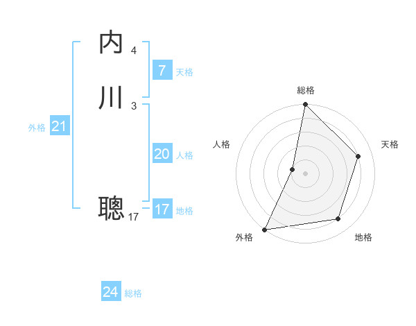 内川 聰さんの外格は21画の5点!