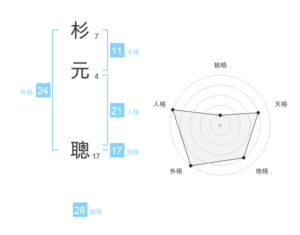 杉元 聰さんの総格は28画の1点!