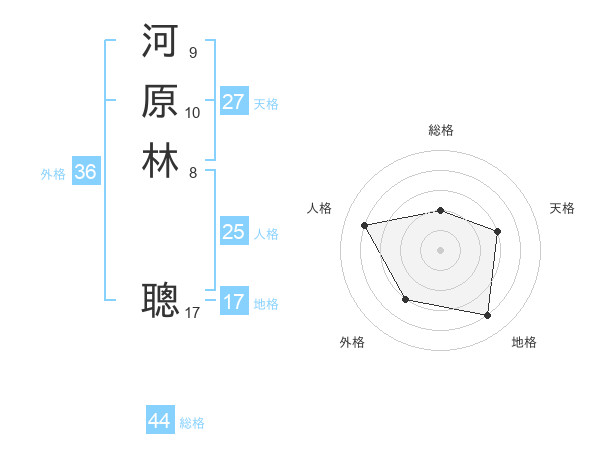 河原林 聰さんの総格は44画の2点!