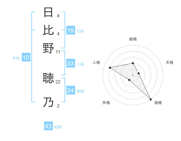 日比野 聴乃さんを姓名の画数から五運を鑑定