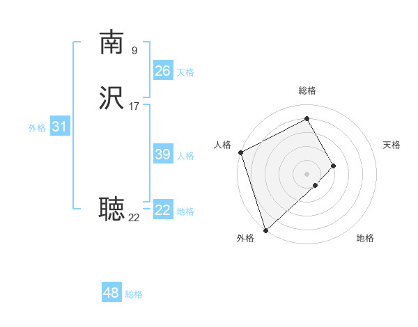 南沢 聴さんの地格は22画の1点!