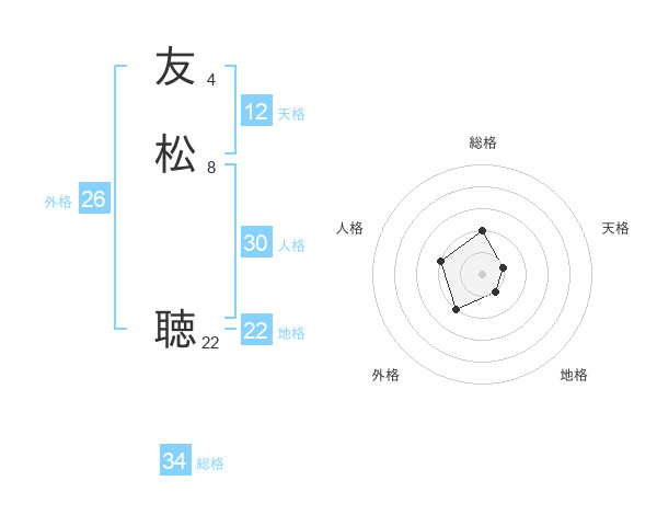 友松 聴さんの総格は34画の2点!