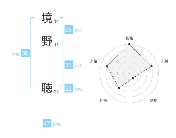 境野 聴さんの総格は47画の5点!