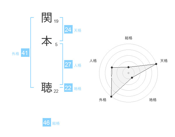 関本 聴さんの総格は46画の1点!