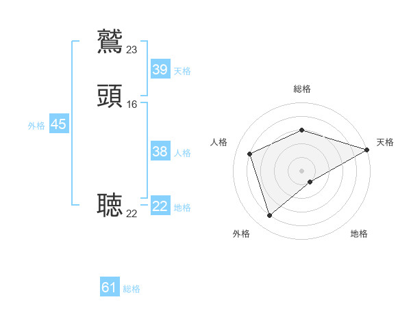 鷲頭 聴さんを姓名の画数から五運を鑑定