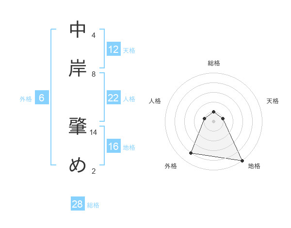 中岸 肇めさんの総格は28画の1点!
