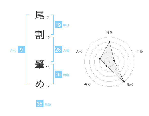 尾割 肇めさんの総格は35画の4点!