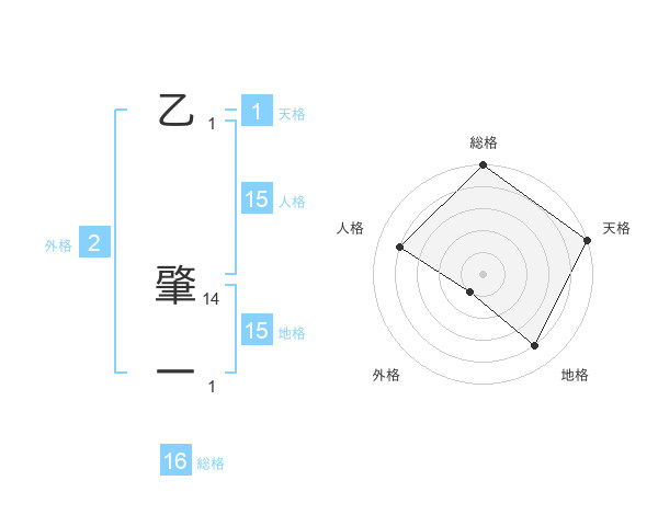 乙 肇一さんの総格は16画の5点!