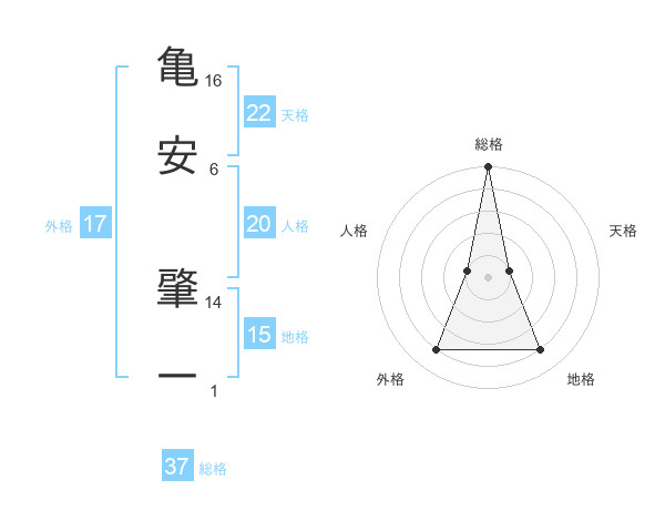亀安 肇一さんの総格は37画の5点!