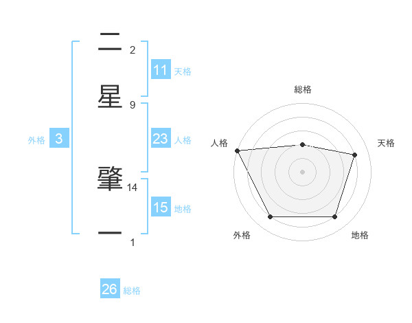 二星 肇一さんの総格は26画の2点!