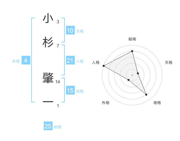 小杉 肇一さんの総格は25画の4点!