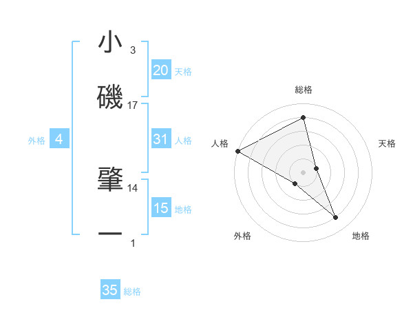 小磯 肇一さんの総格は35画の4点!