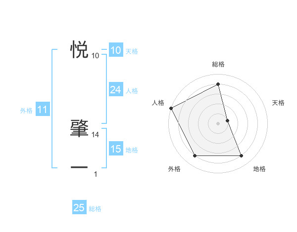 悦 肇一さんの外格は11画の4点!