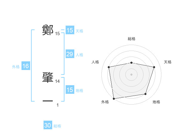 鄭 肇一さんの天格は15画の4点!