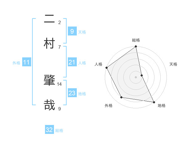 二村 肇哉さんの総格は32画の5点!