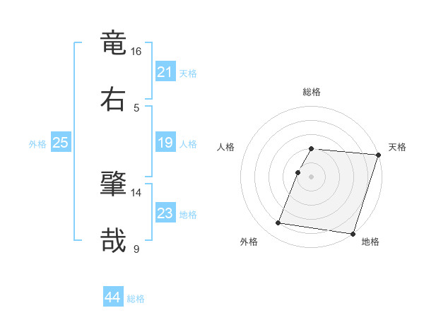 竜右 肇哉さんを姓名の画数から五運を鑑定