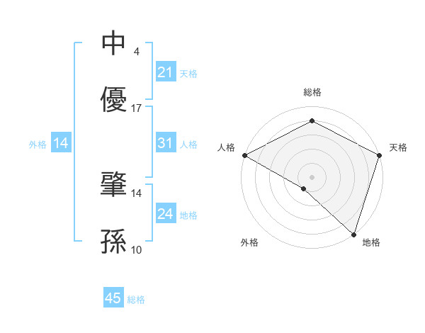 中優 肇孫さんの総格は45画の4点!