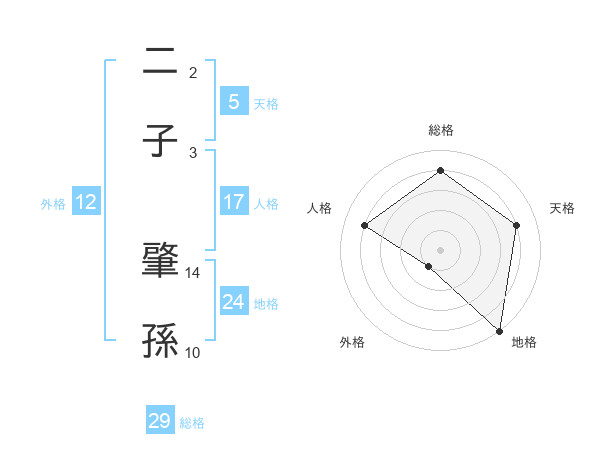 二子 肇孫さんの総格は29画の4点!