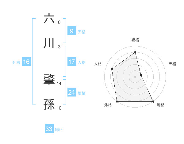 六川 肇孫さんの総格は33画の4点!